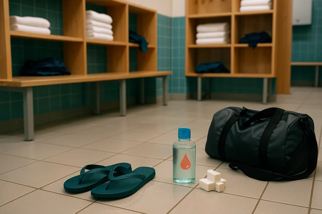- ¡Nunca camines descalzo!: Regla número uno. Usa siempre chanclas en vestuarios, duchas y bordes de la piscina. El suelo es el principal foco de contagio.